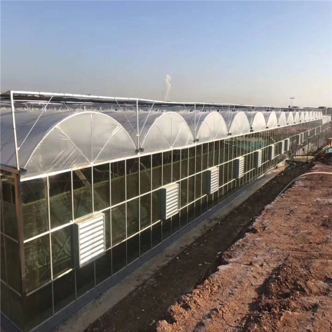 連棟薄膜溫室主要是以薄膜作為覆蓋材料的連棟溫室。一棟完整的連棟薄膜溫室主要包括溫室土建基礎(chǔ)部分、主體熱鍍鋅鋼骨架、外遮陽(yáng)熱鍍鋅鋼骨架、覆蓋材料、外遮陽(yáng)系統(tǒng)、內(nèi)保溫系統(tǒng)、濕簾-風(fēng)機(jī)降溫系統(tǒng)、頂部及四周卷膜開窗系統(tǒng)、噴淋系統(tǒng)、配電系統(tǒng)、排水系統(tǒng)等。 連棟薄膜溫室采用熱鍍鋅鋼制骨架、頂部及四周采用雙層高保溫長(zhǎng)壽無(wú)滴塑料膜,四周也可采用國(guó)產(chǎn)聚碳酸酯板材料,是溫室中一種簡(jiǎn)單的保溫節(jié)能形式,它有保溫性能良好、操作簡(jiǎn)便等優(yōu)點(diǎn),適合于花卉種植、種苗繁育、花卉市場(chǎng)、科研、教學(xué)等,是以后溫室節(jié)能保溫技術(shù)的一個(gè)發(fā)展應(yīng)用方向。