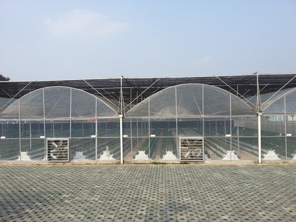 薄膜連棟溫室可作為生產育苗型溫室,用于花卉、蔬菜、苗木的種植栽培,其覆蓋材料的多樣性,決定了該類溫室的適用性。既適合不同要求的使用單位,又適合不同氣候地區。即用戶可根據自身的經濟實力和用途來選擇覆蓋材料和配套設備,以求達到各自的使用目的。